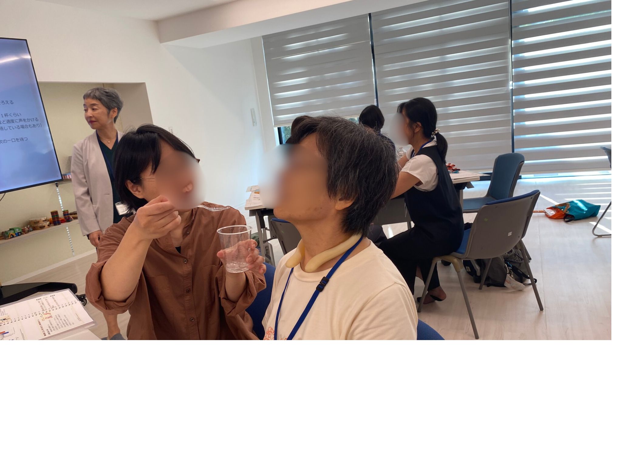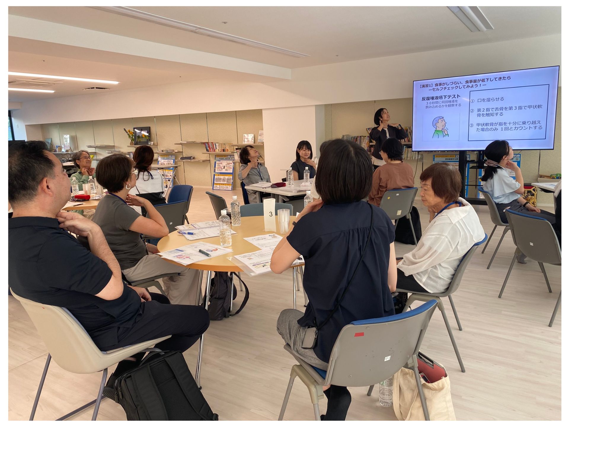 共に学ぶ「ケア」講座の第3回目を開催しました。3回目のテーマは、災害に備えるケア、高齢者のケア、でした。災害に備えるケアでは、災害時に問題になりやすいトイレを、身近にある物品を使って作る演習を行いました。グループごとに作り方に個性があり、大変盛り上がりました。高齢者のケアでは、誤嚥性肺炎を防ぐために、食事形態や食支援に焦点を絞った内容となりました。とろみ調整剤を用いて飲料にとろみをつけて、炭酸飲料と比較してみたり、実際の食事支援の際に、顎を引く!というポイントを実践して、嚥下しやすさを皆で実感しました!次回は10/6で、性といのちのケアと地域包括ケアがテーマです!